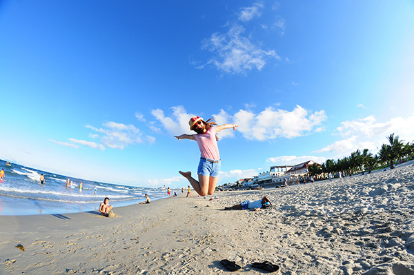 Ngày cuối cùng của tour Đà Nẵng Hội An 3 ngày 2 đêm, buổi sáng chúng tôi dậy sớm và ra tắm biển Mỹ Khê. Không hổ danh là 1 trong 6 bãi biển quyến rũ nhất hành tinh, Mỹ Khê có bãi cát trắng mênh mông kéo dài hút tầm mắt, nước biển trong vắt và những con sóng trắng xóa vỗ vào bờ cát. Biển rất sạch, mặc dù rất rộng nhưng không hề nhìn thấy rác. Đây đúng là thiên đường cho những ai thích tắm biển.